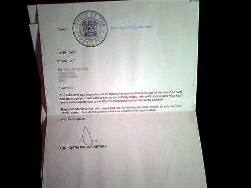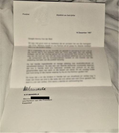 I'm selling a few items for a friend of mine who's husband used to work for the former president's F.W. de Klerk & Nelson Mandela. There is no C.O.A. included but anyone is more than welcome to get one at their own cost. Please find below a letter from the former president Nelson Mandela, addressed to to my friend which is on an official presidential letterhead and signed by him as some sort of proof as to where the items were obtained.