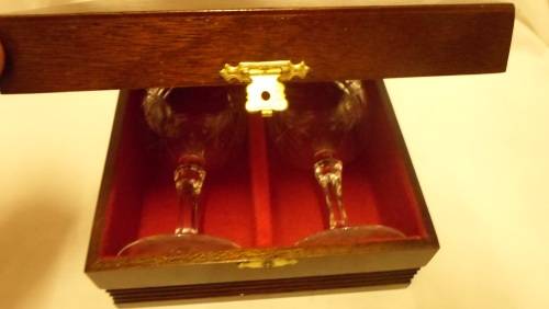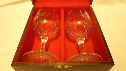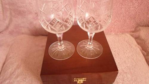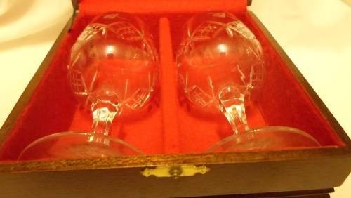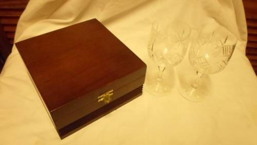 2 X CRYSTAL GLASSES IN A WOODEN BOX