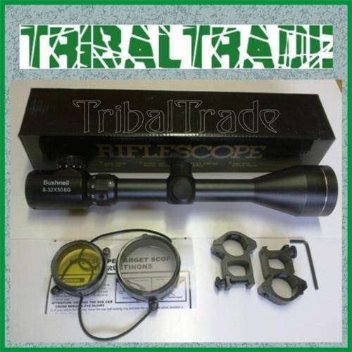 BUSHNELL BANNER 8-32X50EG RIFLE SCOPE. ^ 5 Level Red and 5 Level Green Light. ^ Min Zoom: 8x. ^ Max Zoom: 32x. ^ Scope Covers, Cleaning Cloth and Instruction Manual included. ^ FREE RIFLE MOUNTS. *** Images of actual items on sale, photographed personally.*** * There are 2 scopes available on this auction. Your bid is per unit. * |