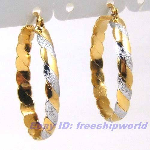 2 YEAR GUARANTEE!! NEW!! GOLD TWO TONE OVAL HOOP EARRINGS