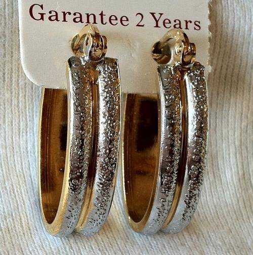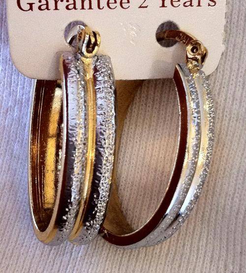 2 YEAR GUARANTEE!! NEW!! GOLD TWO TONE OVAL HOOP EARRINGS