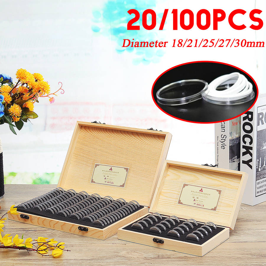 20/100PCS Rugged Wooden Coins Display Case Capsule Holder Storage Coin Collecti 20/100PCS Rugged Wooden Coins Display Case Capsule Holder Storage Coin Collecti