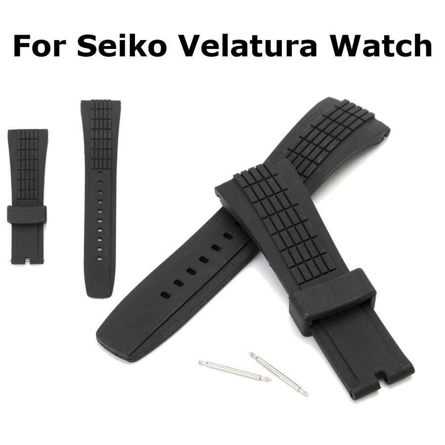 26mm Silicone Black Watch Band Strap For Seiko Velatura Watch Replaceable