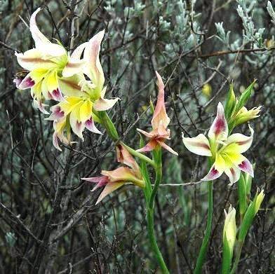 Gladiolus scullyi Seeds Gladiolus scullyi is a fragrant Gladiolus found on silty clay and granite slopes in the northern winter rainfall areas (Namaqualand and western Karoo), It is very similar to Gladiolus venustus but with dull yellow to light brown flowers with darker yellow on the lower tepals and darker brown to purplish highlights. Gladiolus (from Latin, the diminutive of gladius, a sword) is a genus of flowering plants in the iris family (Iridaceae). Sometimes called the sword lily, the most widely-used English common name for these plants is simply gladiolus (plural gladioli or gladioluses). The genus Gladiolus contains about 260 species, of which 250 are native to sub-Saharan Africa, mostly South Africa. About 10 species are native to Eurasia. There are 160 species of Gladiolus endemic in southern Africa and 76 in tropical Africa. The fragrant flower spikes are large and one-sided. They make very good cut flowers. You're buying a pack of 20 Seeds We'll supply you with all the germination & care instructions. |