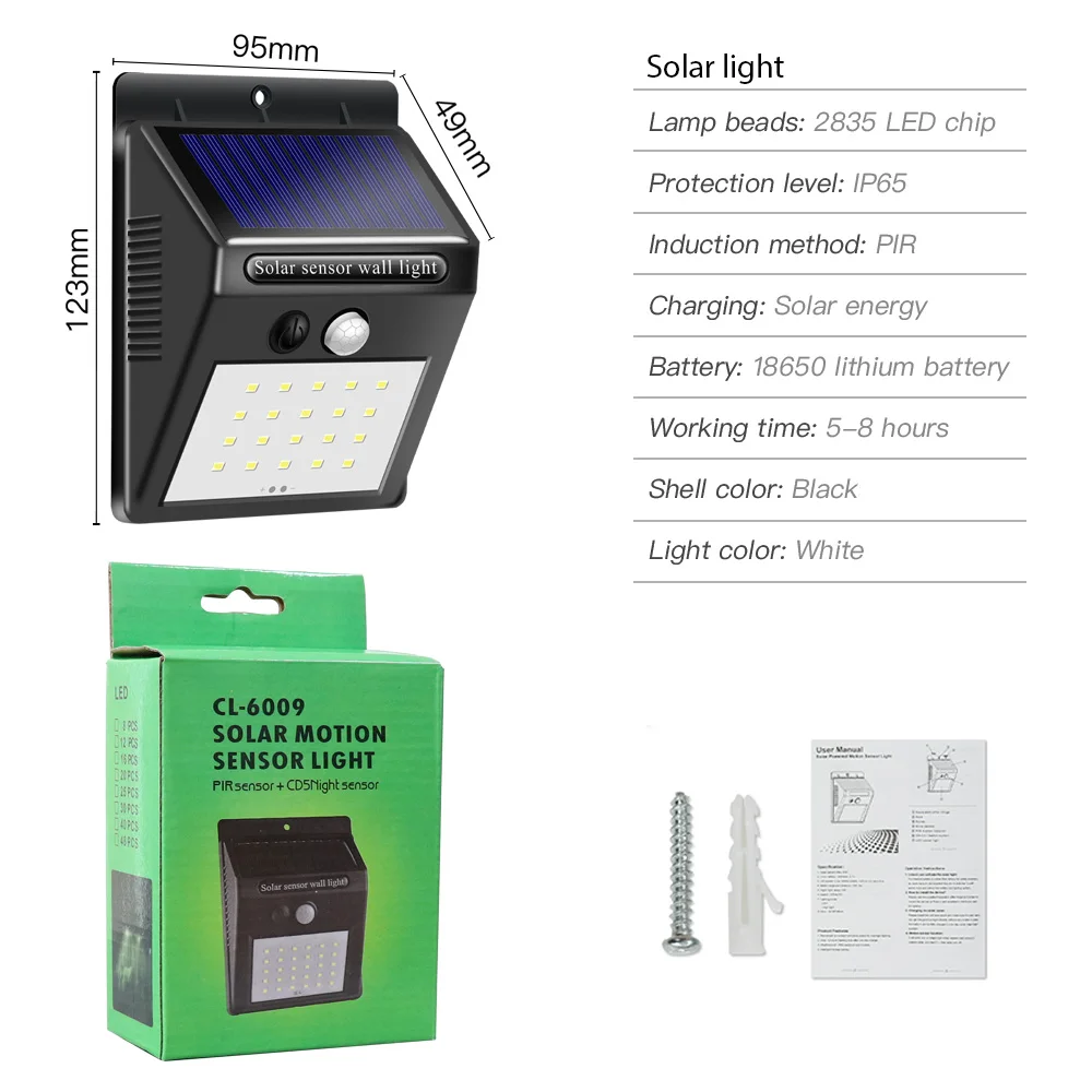 20 LED Waterproof Motion Sensor Solar Garden Light for Outdoor