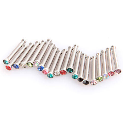 20 X Stainless Steel Rhinestone Nose Rings Bone Stud Bars Body Piercing Jewelley