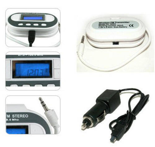 The FM transmitter with LCD display can modulate the audio frequency signal of iPod, CD, MD, MP3, MP4, PDA, Notebook, PC or any device has 3.5mm earphone socket, to FM signal. Therefore, with this device, you can listen to high quality music anywhere with FM radio.