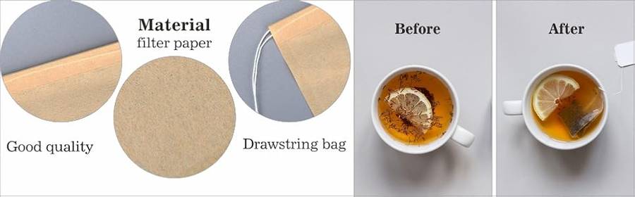Well performance: filmy paper with strong penetration of water, make the tea seep through easily and quickly to get more strong tea, never taint the flavor of brewed tea; Allows for the fullness of flavor while also confining debris