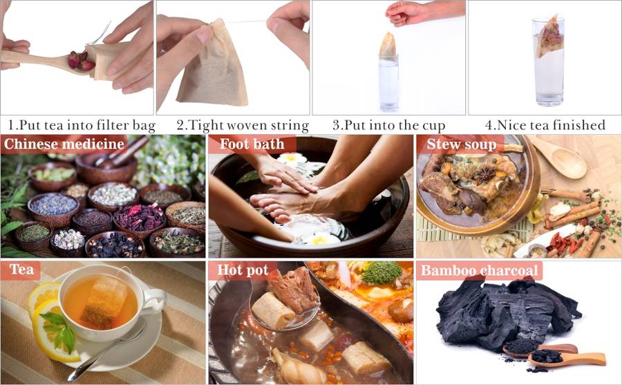 Features: The tea bags are lightweight and portable, convenient to carry when you are travelling or outside. Made of wood pulp filter paper, non-toxic and not easy to break, you can enjoy the tea time. Good for tea, foot bath, stew soup, Chinese medicine, bamboo charcoal bag, hot pot and etc.
