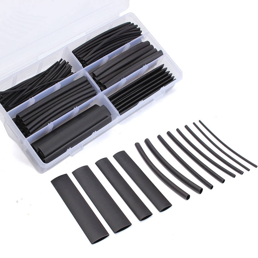 200 PCS Halogen-Free 2:1 Heat Shrink Tubing Wire Cable Kit 6 Sizes Black Wrap