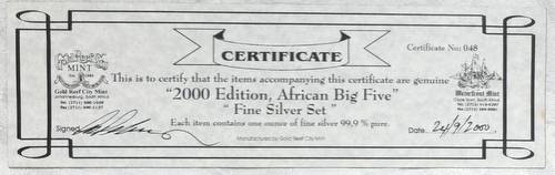 2000 EDITION AFRICAN BIG FIVE "FINE SILVER SET GOLD REEF CITY MINT
