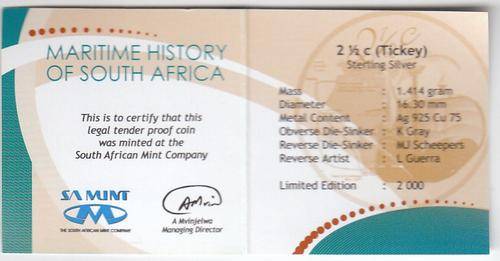 2000 Ltd ED: Proof 2009 Silver Maritime History Tickey in SA Mint bag with CoA