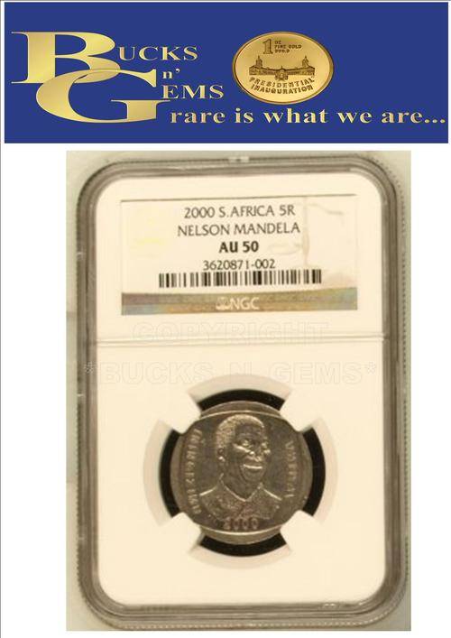 2000 MANDELA SMILE R5 COIN AU50 -NGC GRADED RARETY