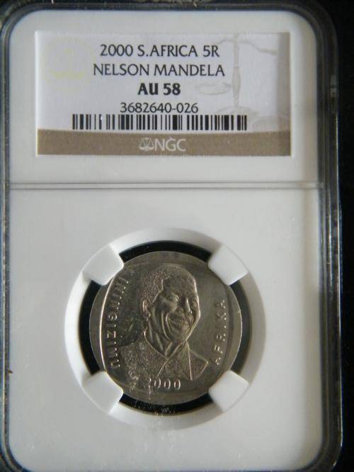 This auction is for 5 very scarce 2000 Smiley Mandela coins graded by NGC - the bidding will be for the set