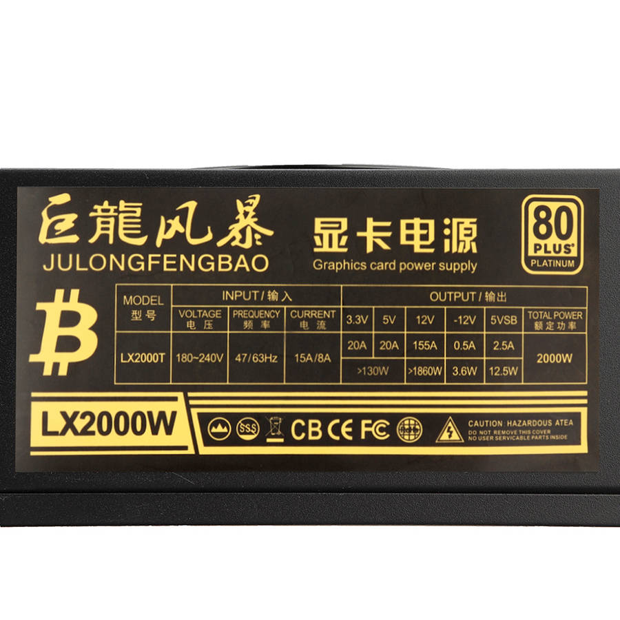 | Product | 2000W Miner Graphics Card Power Supply For Mining 180~240V 80Plus Platinum Certified ATX PSU |