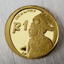 The obverse of the R1 Gold coin depicts the official South African Coat of Arms, the year “2006” and the words “South Africa” and “Ningizimu Afrika” (the siSwati words for South Africa). This coin is a R1 1/10oz 24 carat gold coin.