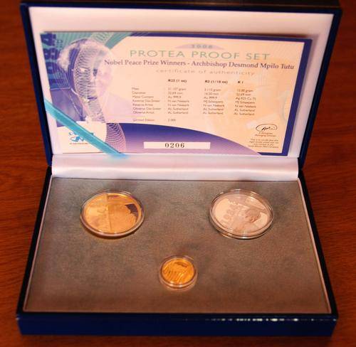 The coin set consists of a 1 oz and 1/10 oz gold coin and a R1 silver coin.