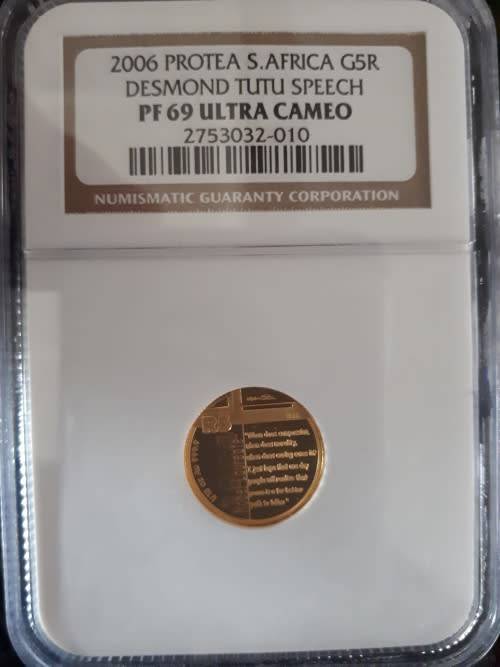 2006 PROTEA S.AFRICA G5R DESMOND TUTU SPEECH 1/10 GOLD PF69 ULTRA CAM