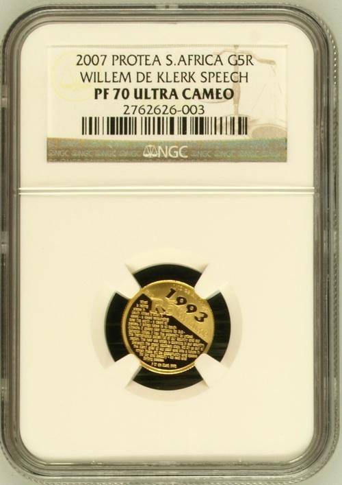 2007 F.W. De Klerk *** PF70UC *** Protea Gold 1/10th *** FINEST KNOWN!!!