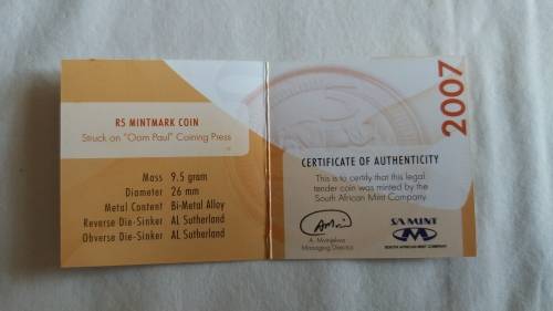 AS STRUCK ON THE FAMOUS OOM PAUL COINING PRESS