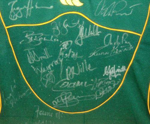 Our research indicates that the signatures on the jersey are of the entire squad involved at the 2007 Rugby World Cup, played in France.