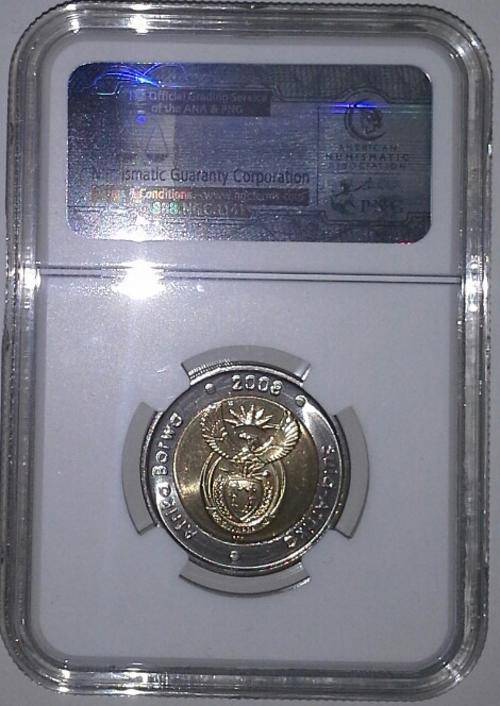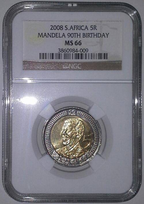 2008 Mandela 90th Birthday R5 Coin NGC Graded MS66