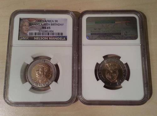 2008 MANDELA BIRTHDAY R5 COIN.***MS65 LIMITED MANDELA LABEL*** NGC GRADED.