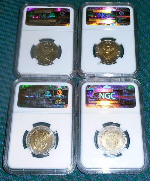 KAIZER SA2008 S.Africa R5 Mandela 90th Birthday NGC MS63NGC graded Uncirculated coins commemorating Nelson Mandela's 90th BirthdayAlways highly collectable items..Have a look at all my other auctions...combined shipping is approved for multiple auction wins4 coins available here on auction..Bid per coin to win at least one coin, or try to perhaps win the lot