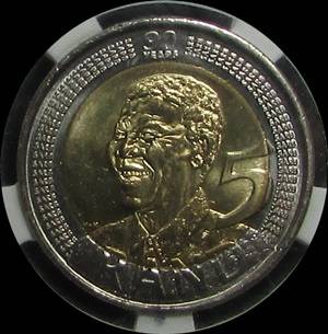2008 Nelson Mandela 90th Birthday Coin Graded MS 66 by SANGS