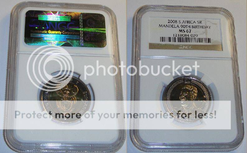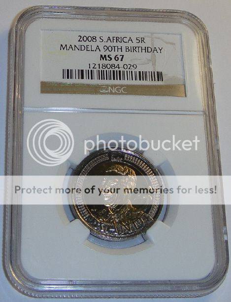 2008 Nelson Mandela 90th Birthday Commemorative R5 : NGC graded MS67