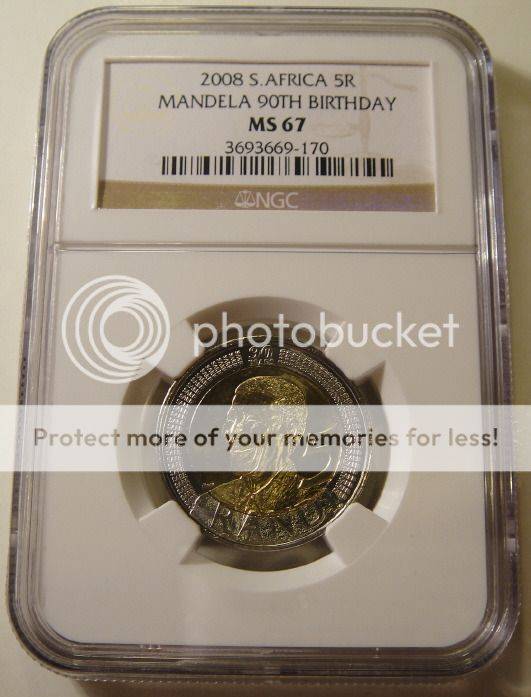 2008 Nelson Mandela 90th Birthday R5 Coin : NGC Graded MS67