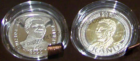 In keeping with South African numismatic tradition, the outgoing President is depicted on the obverse of the highest denomination circulation coin a year after he has left office. Therefore in the year 2000, former President Nelson Rolihlahla Mandela was featured.