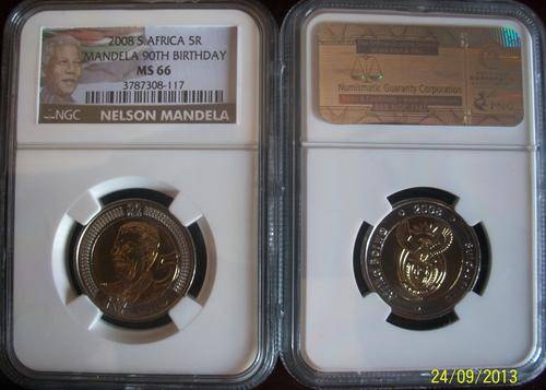 2008 South Africa 5 Rand - Mandela 90th Birthday - NGC Graded MS66 ** Color Label** Don't miss out!