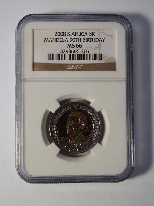 2008 South Africa R5 Mandela 90th birthday - graded MS 66 by NGC