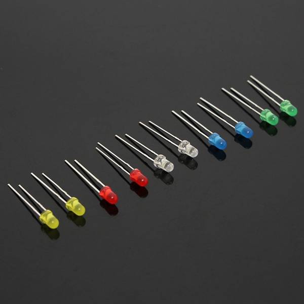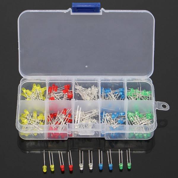 200Pcs 3MM LED Light Assorted Kit Red Green Blue Yellow White DIY LEDs Set