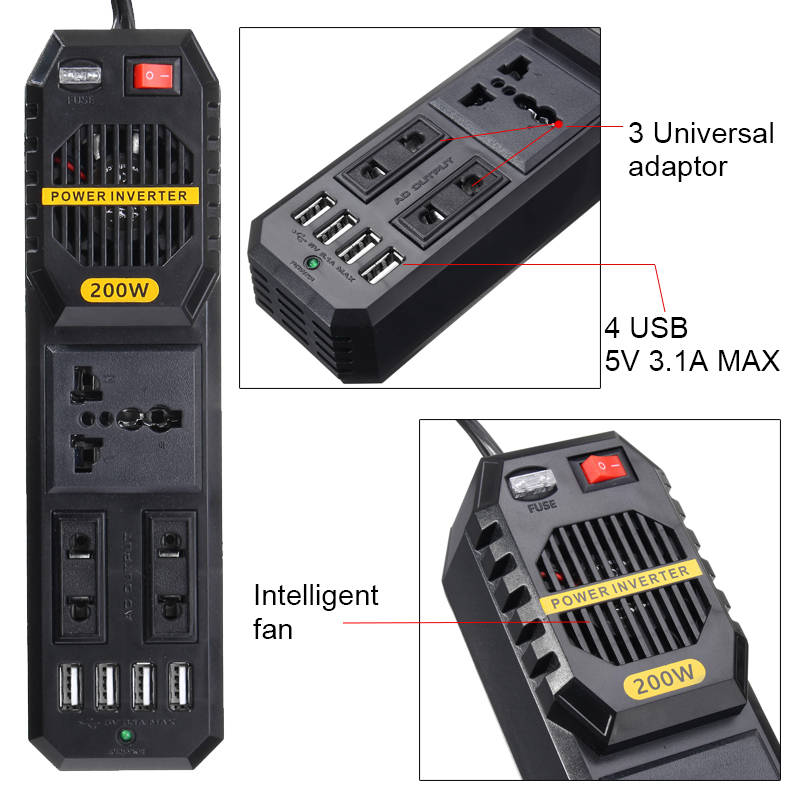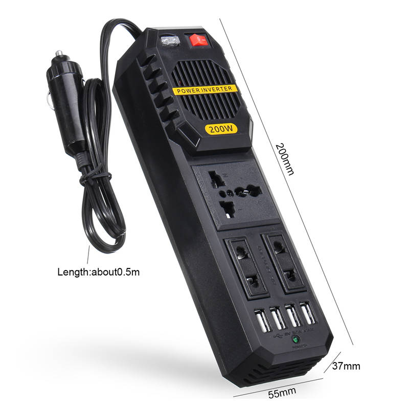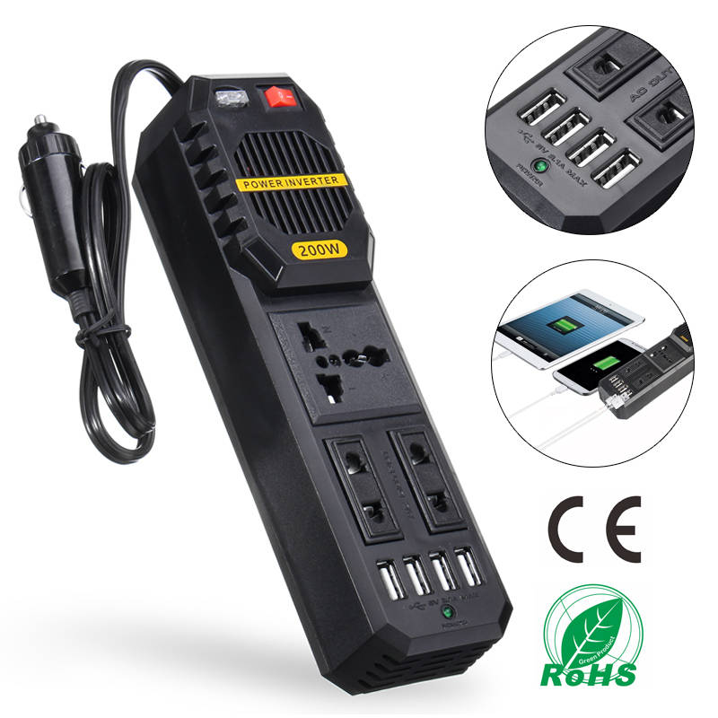 200W Car Power Inverter DC 12V to AC 220V With 4 USB Port Cigarette lighter
