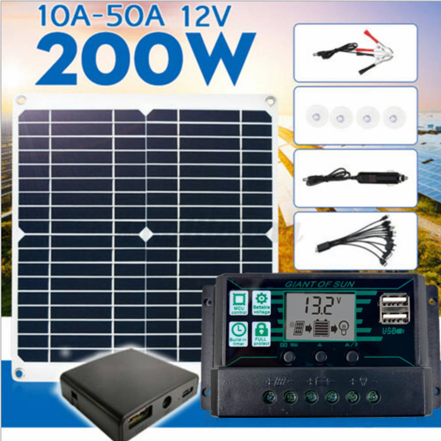 200W Solar Panel Kit 12V Battery Charger 10-100A Controller For Ship Motorcycle 200W Solar Panel Kit 12V Battery Charger 10-100A Controller For Ship Motorcycle
