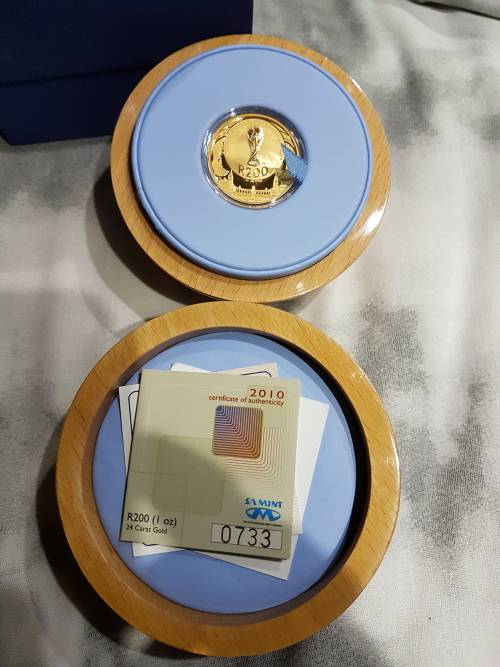 2010 FIFA SOCCER 1 OZ GOLD COIN PROOF IN WOODEN BALL WITH CERTIFICATE