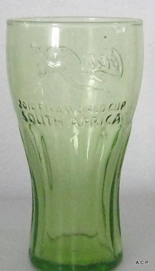 2010 FIFA WORLD CUP SOUTH AFRICA GREEN COCA COLA GLASS(+-13cm long)