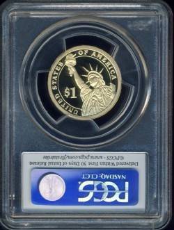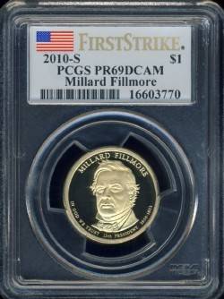 A 2010 Presidential One Dollar($1) coin, from the San Fransisco Mint. The coin has been certified by the PCGS as a First Strike Coin.