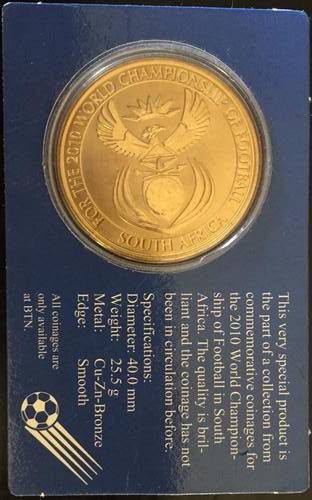 2010 WORLD CHAMPIONSHIP FOOTBALL MEDAL IN BRASS - CARDED COA