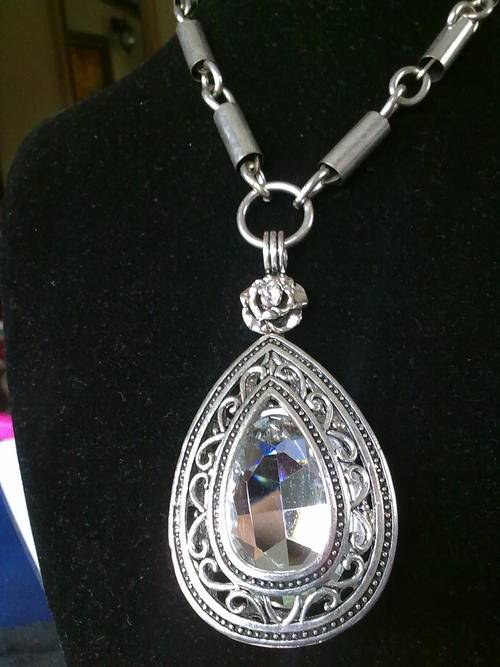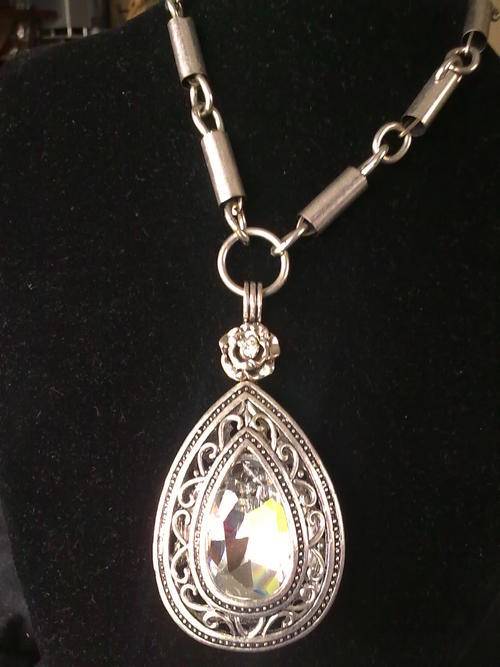 2011 HADASSAH COLLECTION!!STUNNING TIBETAN SILVER CRYSTAL PENDANT NECKLACE