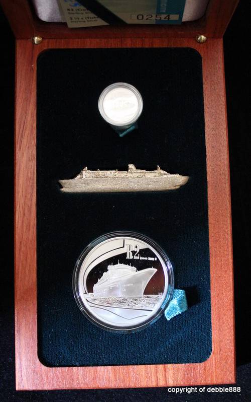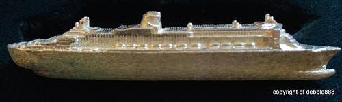 The miniature model is of the Queen Mary 2, and is in sterling silver.