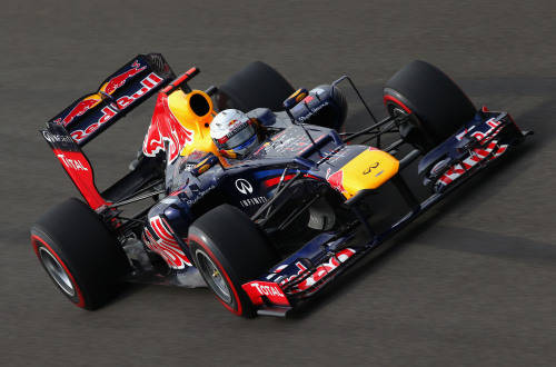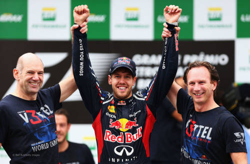 Sebastian Vettel, Mark Webber, Christian Horner and Adrian Newey