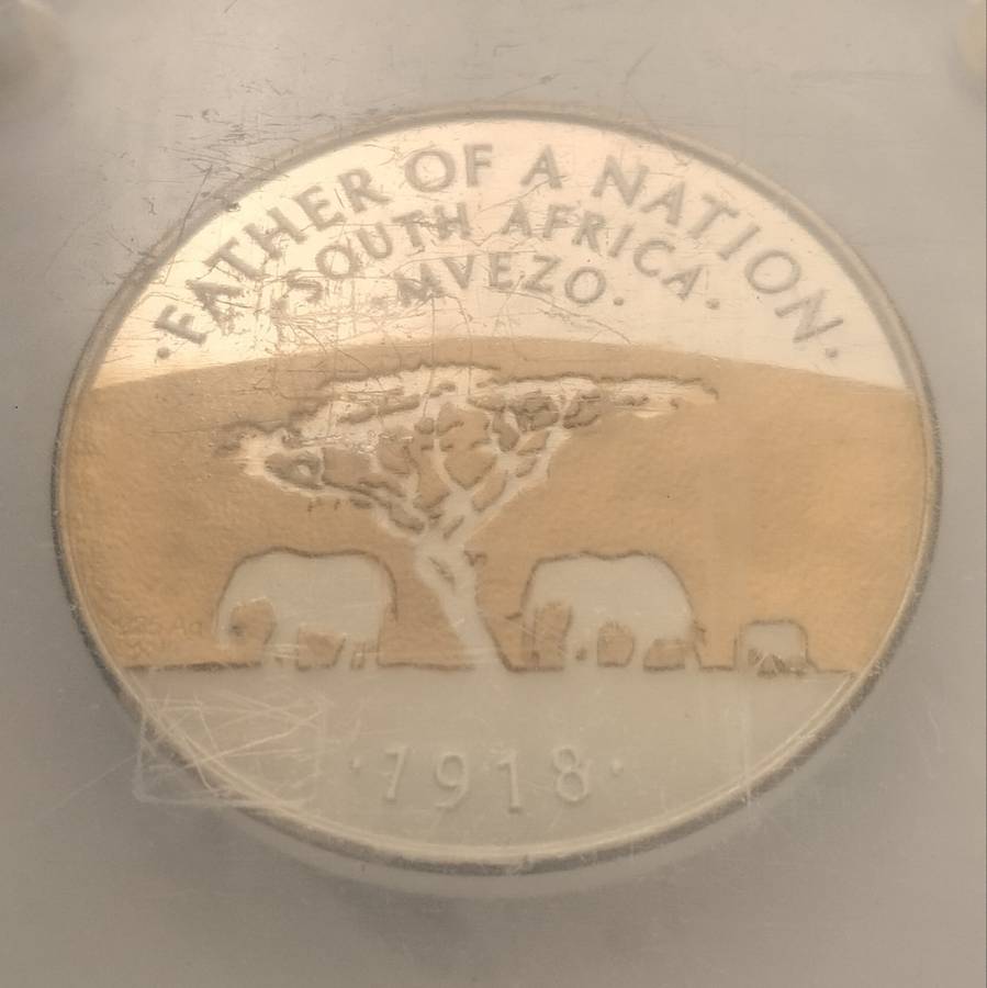 Slab still has protective plastic stickers. All scratches are on the plastic stickers not on the slab or medallion.