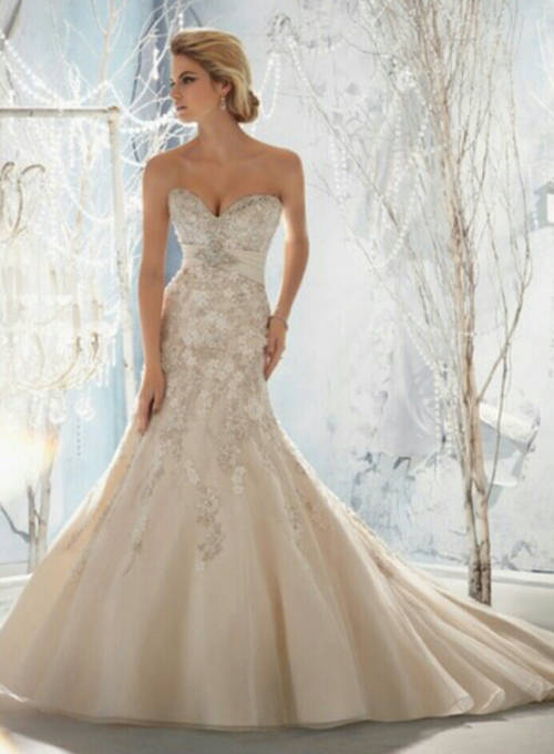 Stunning mermaid style ivory lace dress. Sizes US 4-18 available as well as custom made (non refundable).Production and delivery takes about 5-7 weeks. However there can be delays with customs etc.
