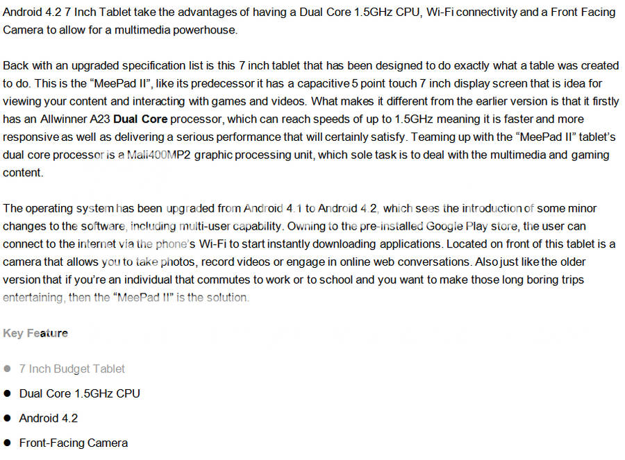 New 2014 "MeePad II" 7" GoogleAndroid 4.2 Tablet