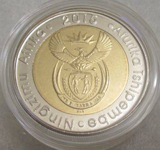 This coin has been minted on the "oom Paul" mint press - one of the oldest working coin presses in the world. This is one of the mint presses that have been used to mint the ZAR coinage.