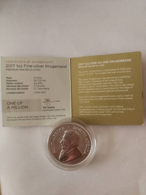 50 year anniversary coin celebrating 50 years since the start of manufacturing of Krugerrands.