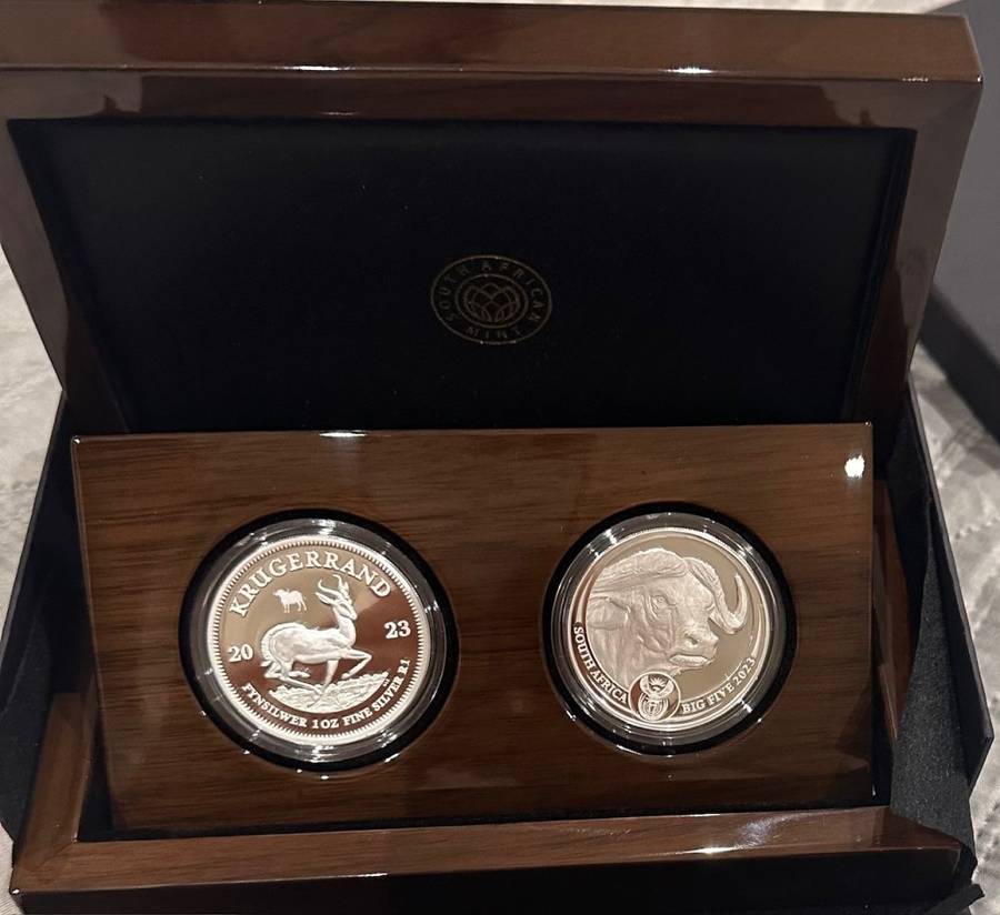 Highly collectable mintmarked Buffalo Krugerrand silver set consists of 2 X 1oz silver coins